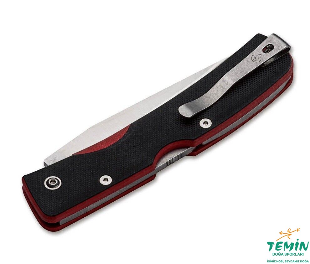 Çakı, yönü değiştirilebilir, paslanmaz çelik klipse sahip.