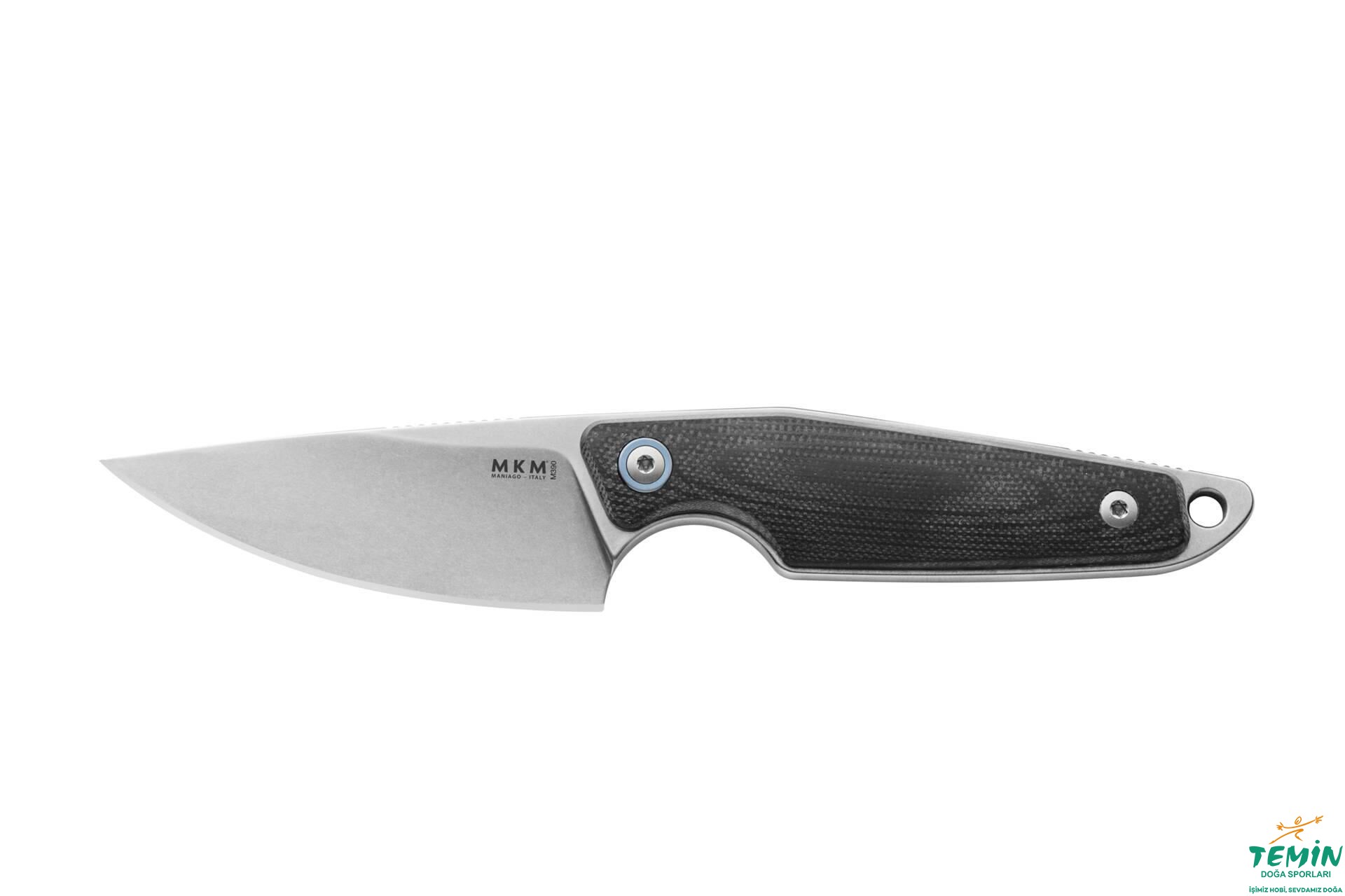 İzlediğiniz ürün (MK MA01-GBK: MKM Makro 1 Black G10), yuvarlak uç (drop point) yapısındadır ve siyah G10 sap malzemesine sahiptir. Uzatılmış kuyruk (extended tang) yapısındaki bıçakta, kuyruk konturlarını içeriden takip eden bu dayanıklı ve kaydırmaz nitelikteki sap malzemesinin yerine takılmasında cıvatalardan faydalanılmıştır. Bağlantı elemanının pulu (Bu pul, koleksiyonun alametifarikası hâlindedir.), anodize edilerek mavi renk almış, titanyumdur. Ergonomik sapın kavisleri ve geniş parmak oluğu (parmağınızı namludan belirgin biçimde ayırmaktadır), sağlam ve konforlu kavramaya imkân tanımaktadır. Dış konturlara uygun olarak içi boşaltılan sap, hafifliğe katkı sağlamaktadır.