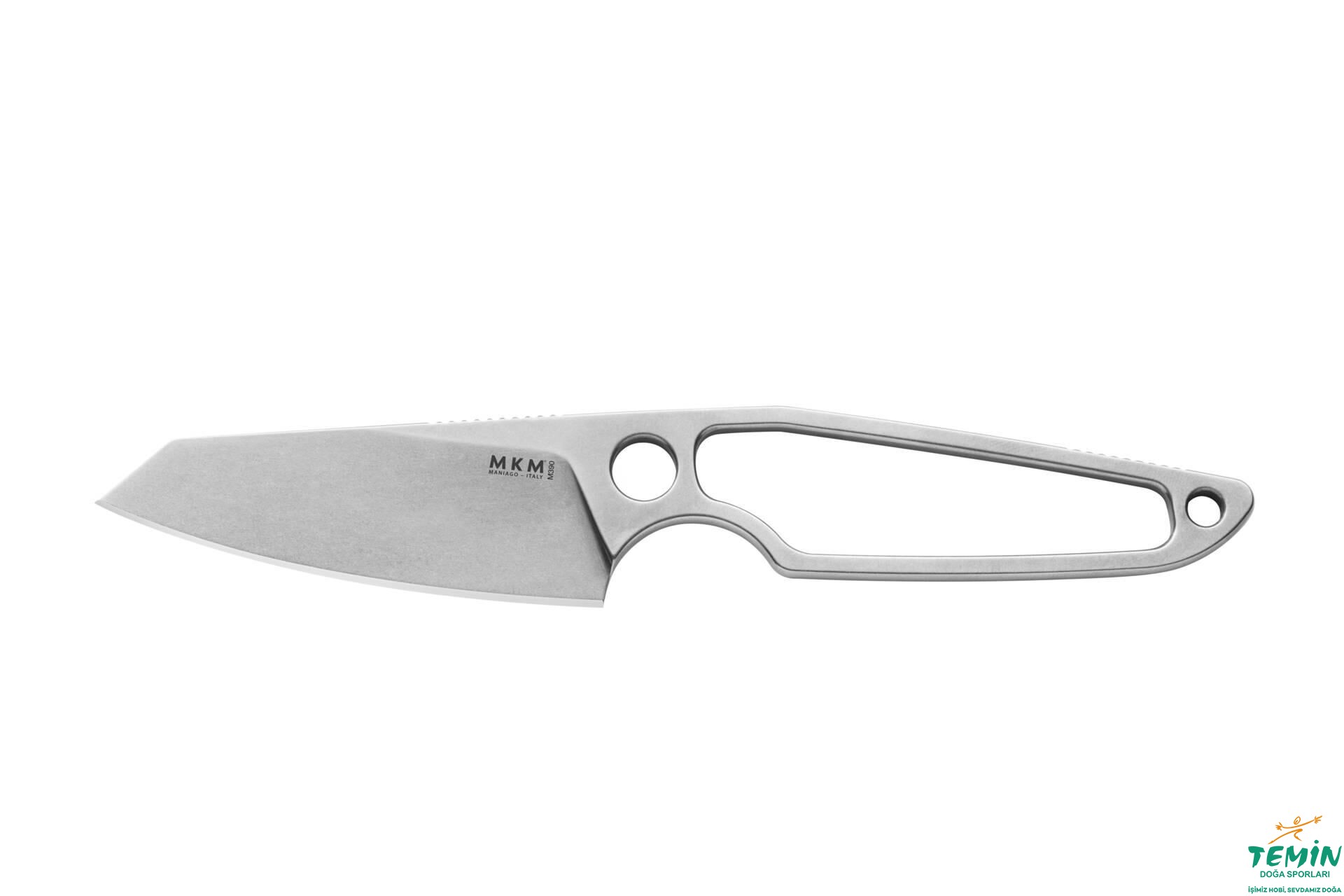 İzlediğiniz ürün (MK MA02-N: MKM Makro 2 Naked), kendisini dayanıklı kılan koyun ayağı (sheepsfoot) uç yapısındadır ve sap malzemesi kullanılmayan (iskelet hâlindeki) bir bıçaktır. Ergonomik sapın kavisleri ve geniş parmak oluğu (parmağınızı namludan belirgin biçimde ayırmaktadır), sağlam ve konforlu kavramaya imkân tanımaktadır. Dış konturlara uygun olarak içi boşaltılan sap, hafifliğe katkı sağlamaktadır.