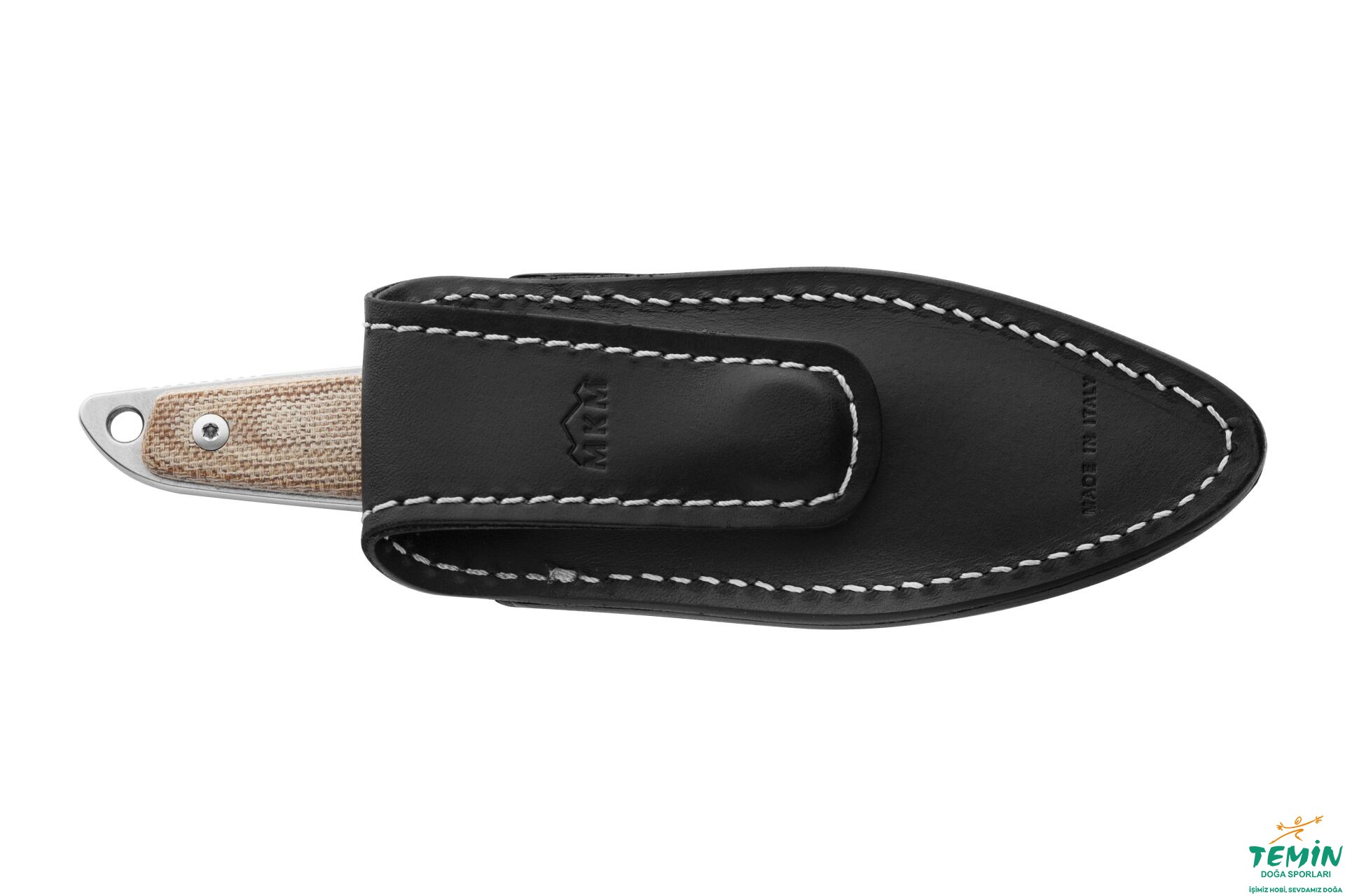 İzlediğiniz ürün (MK MA02-NC: MKM Makro 2 Natural Canvas), kendisini dayanıklı kılan koyun ayağı (sheepsfoot) uç yapısındadır ve doğal renginde bırakılan kanaviçe mikarta (natural canvas micarta) sap malzemesine sahiptir. Uzatılmış kuyruk (extended tang) yapısındaki bıçakta, kuyruk konturlarını içeriden takip eden bu dayanıklı ve şık sap malzemesinin yerine takılmasında cıvatalardan faydalanılmıştır. Bağlantı elemanının pulu (Bu pul, koleksiyonun alametifarikası hâlindedir.), anodize edilerek mavi renk almış, titanyumdur. Ergonomik sapın kavisleri ve geniş parmak oluğu (parmağınızı namludan belirgin biçimde ayırmaktadır), sağlam ve konforlu kavramaya imkân tanımaktadır. Dış konturlara uygun olarak içi boşaltılan sap, hafifliğe katkı sağlamaktadır.
