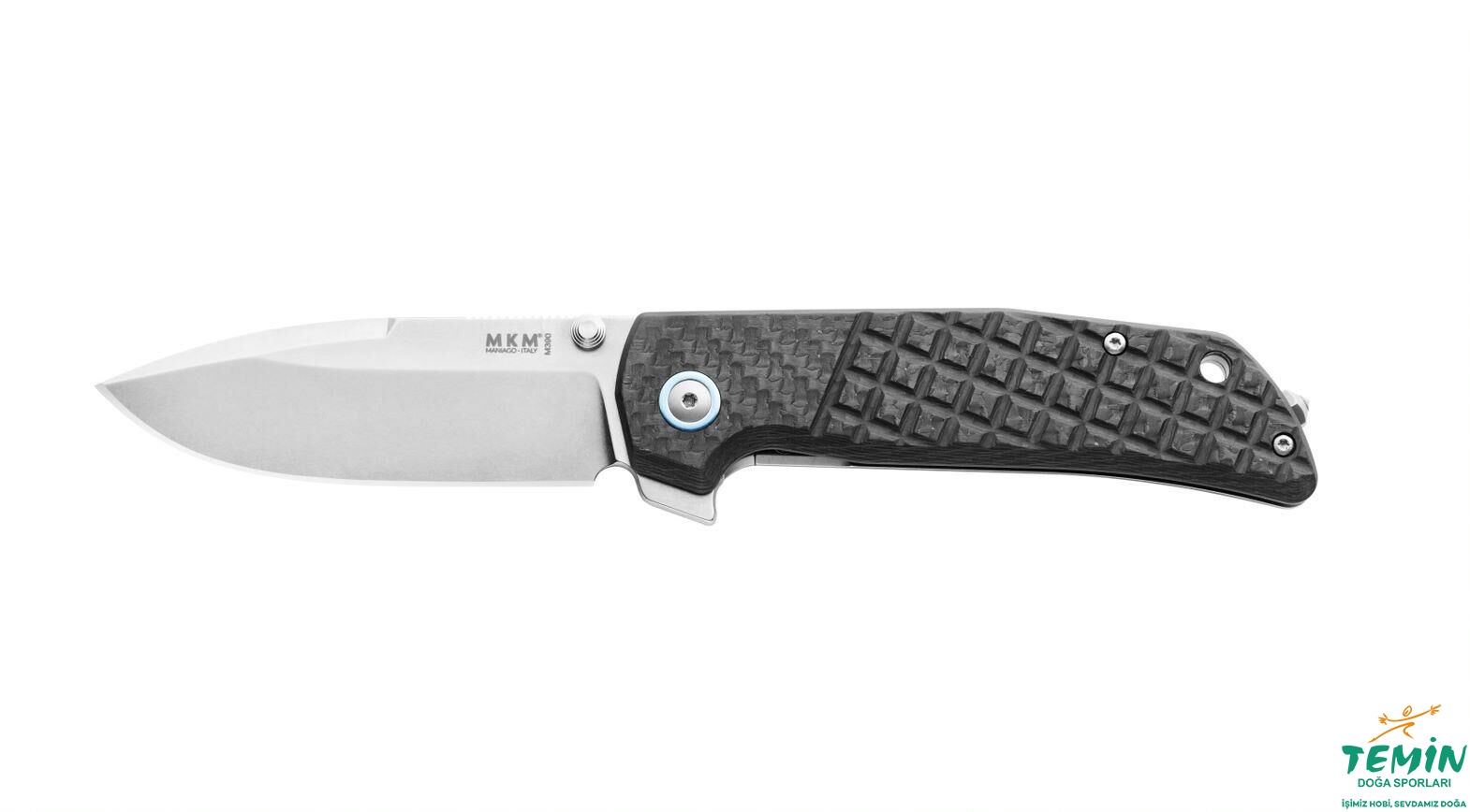 İzlediğiniz ürün (MK MM-CT), taşlanarak (stonewash) mat ve dayanıklı kılınmış namluya sahiptir. Sapın kilit görevindeki arka kanadı titanyum, ön kanat ise karbon fiberdir. Hafiflik ve sağlamlığın şık temsilcisi bu malzemelerin kullanımıyla hem hafif hem de sağlam olduğu kadar şık ve iyi kavranabilen bir yapı elde edilmiştir. Doğal renginde bırakılan titanyum sap kanadı ve ara parça, boncuk püskürtmesiyle (bead blasted) kumlanmıştır. Pivot bağlantı elemanının pulu mavi renk alacak biçimde anodize edilmiştir. Cep klipsi de taşlanarak (stonewash) namluyla uyumlu kılınmıştır.
