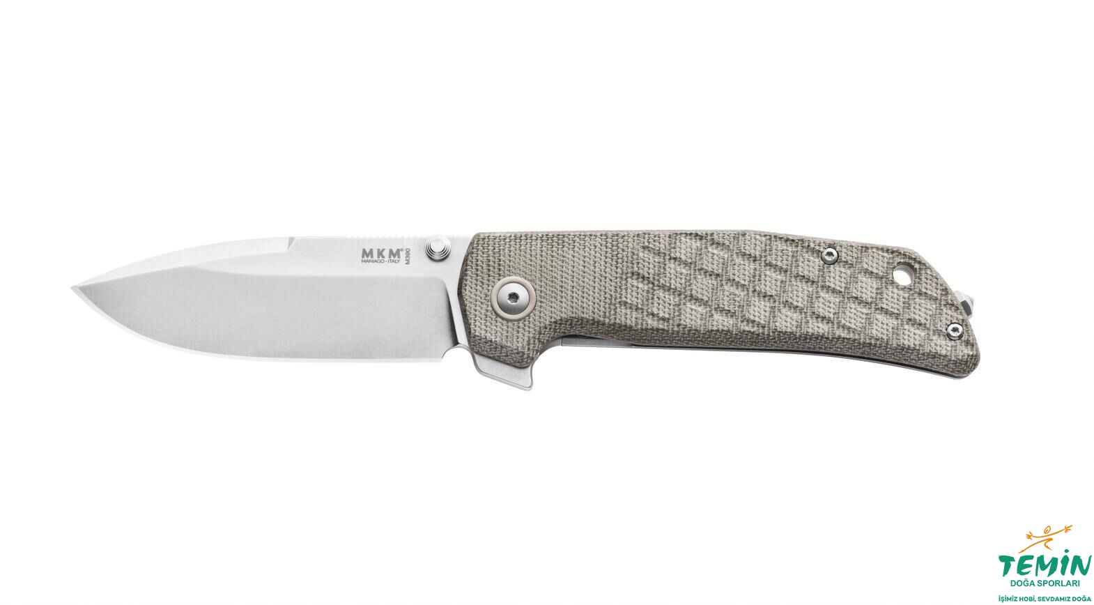 İzlediğiniz ürün (MK MM-GCT), taşlanarak (stonewash) mat ve dayanıklı kılınmış namluya sahiptir. Sapın kilit görevindeki arka kanadı titanyum, ön kanat ise hâki renkli kanaviçe mikartadır (green canvas micarta). Böylelikle hem hafif hem sağlam hem de iyi kavranabilen bir yapı elde edilmiştir. Doğal renginde bırakılan titanyum sap kanadı, pivot bağlantı elemanı pulu ve ara parça, boncuk püskürtmesiyle (bead blasted) kumlanmıştır. Cep klipsi de taşlanarak (stonewash) namluyla uyumlu kılınmıştır.