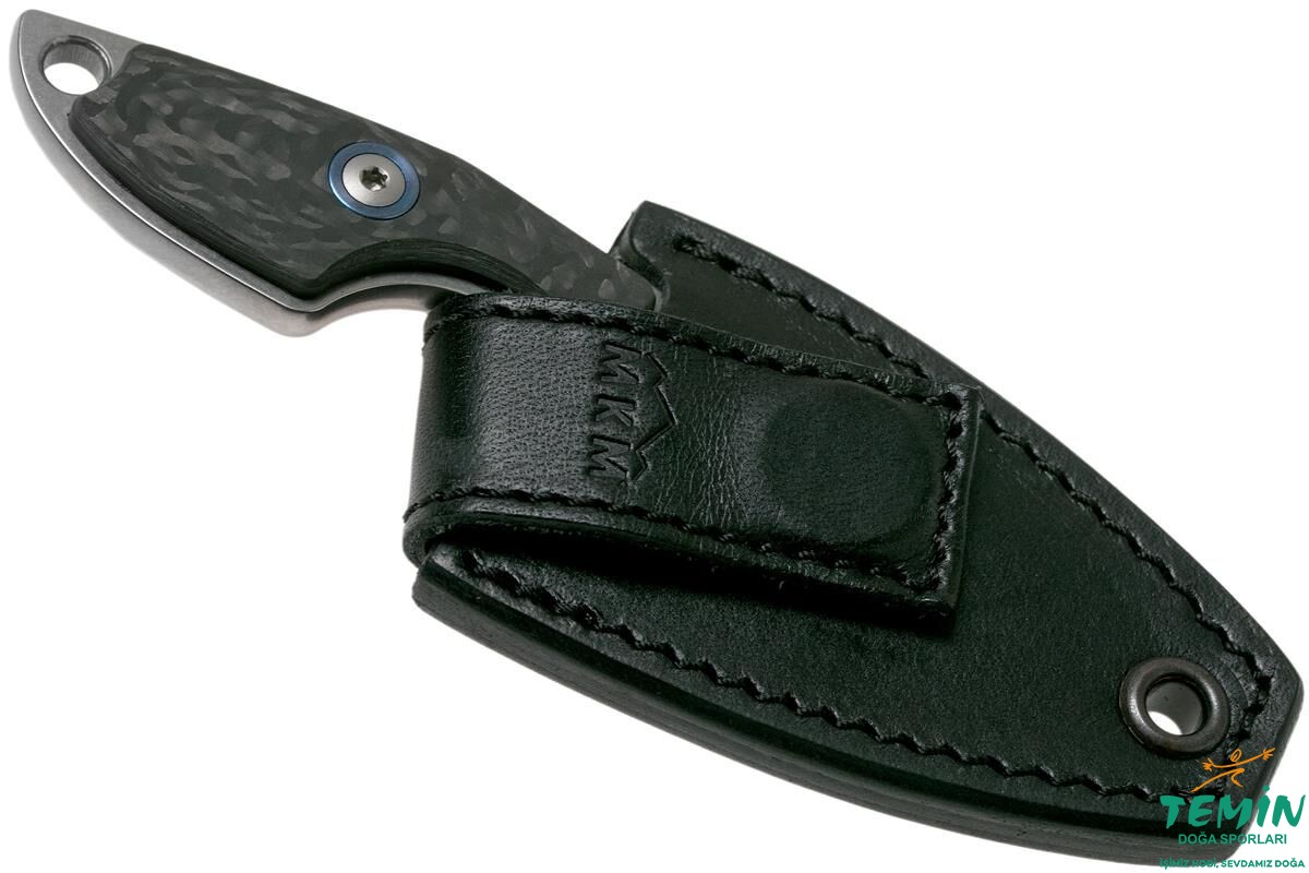İzlediğiniz ürün (MK MR01-CF: MKM Mikro 1 Carbon Fiber), yuvarlak uç (drop point) yapıdadır ve karbon fiber sap malzemesine sahiptir. Kuyruk konturlarını içeriden takip eden bu hem dayanıklı hem de şık sap malzemesi, sökme kolaylığı için, tek cıvata ile yerine takılmıştır ve yuvaya oturduğundan dönmez. Bağlantı elemanının pulu (Bu pul, koleksiyonun alametifarikası hâlindedir.), anodize edilerek mavi renk almış, titanyumdur.