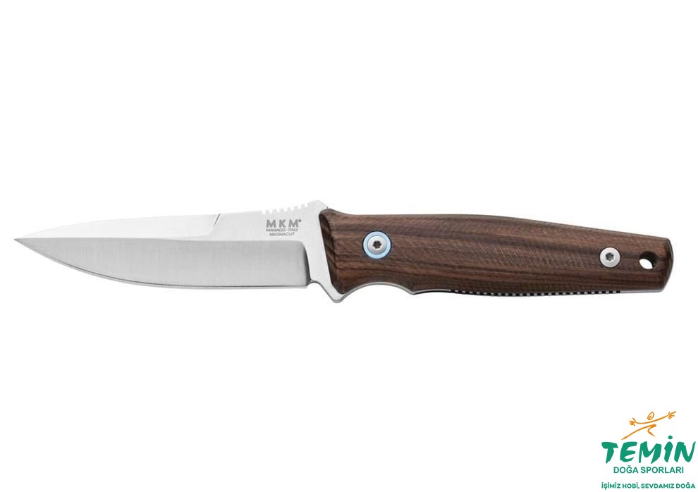 Tüm versiyonlarda üstün malzeme ve işçilik kalitesi dikkat çekmektedir. İzlediğiniz ürün (MK TPFD-S), saten parlaklığa getirilen namluya sahiptir. Bıçak imalatçılarının aradığı pek çok niteliği (görsellik, dayanıklılık, işlenebilirlik vb.) bünyesinde toplayan bir ahşap olan gül ağacı (santos wood) sap malzemesi taşımaktadır. Pivot bağlantı elemanın pulu, anodize edilerek mavi renk kazandırılan (Bu pul, MKM ürünlerinin alametifarikası hâlindedir. MKM’nin kullanmayı sevdiği mavi rengin kökeninde ise, Maniago bıçak üretiminin ilk itiş gücünü sağlayan nehirler bulunmaktadır.) titanyumdur.