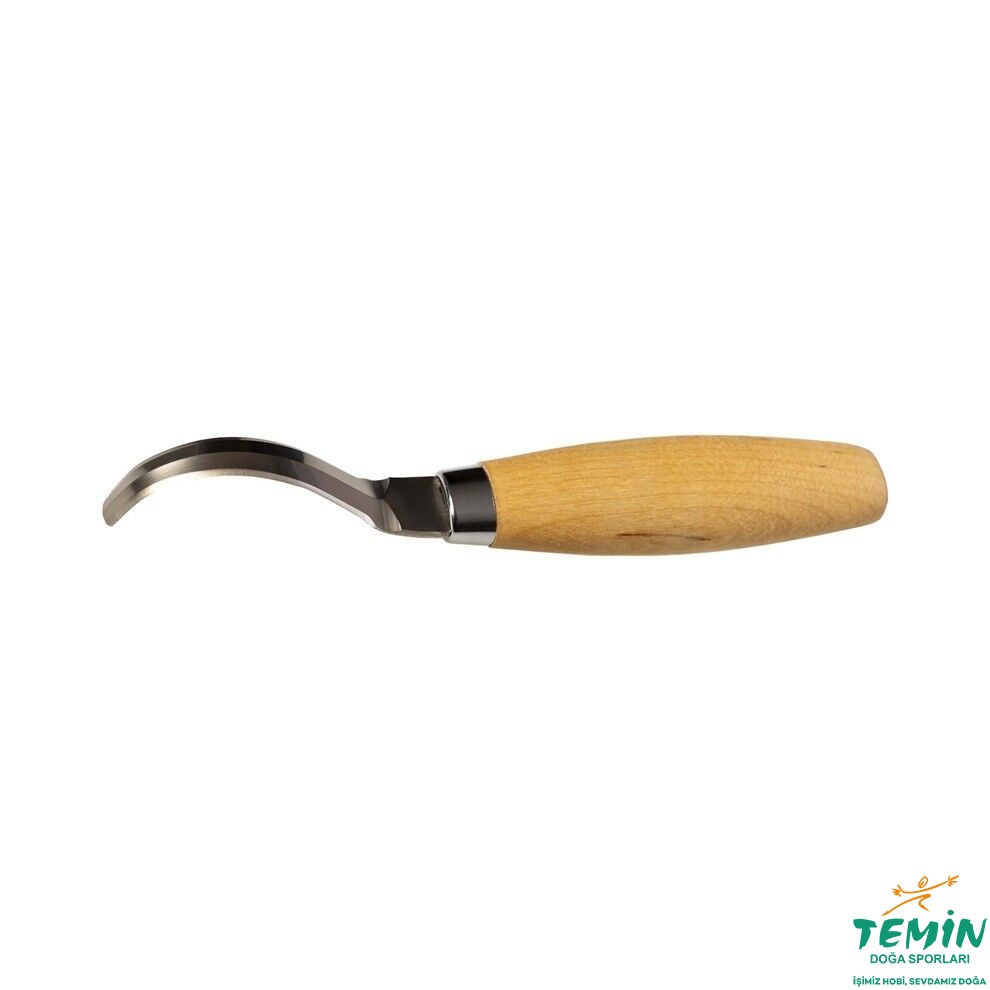 Kanca Bıçak 163 Çift Kenarlı (S), sıkı kavisli ve her iki tarafı da keskinleştirilmiş 74 mm'lik bir bıçağa sahiptir - bu da onu kepçe veya kase gibi derin oymalar için ideal hale getirir. 2 mm kalınlığındaki bıçak, geri dönüştürülmüş İsveç paslanmaz çeliğinden yapılmıştır ve mükemmel kenar tutma özelliği sunar. Tam kuyruk tang güç ve denge sağlarken, yağlı İskandinav huş ağacı sapı doğal ve rahat bir tutuş sunar. Her bıçak, birinci sınıf İsveç bitkisel tabaklanmış deriden yapılmış bir deri kılıfla birlikte gelir.