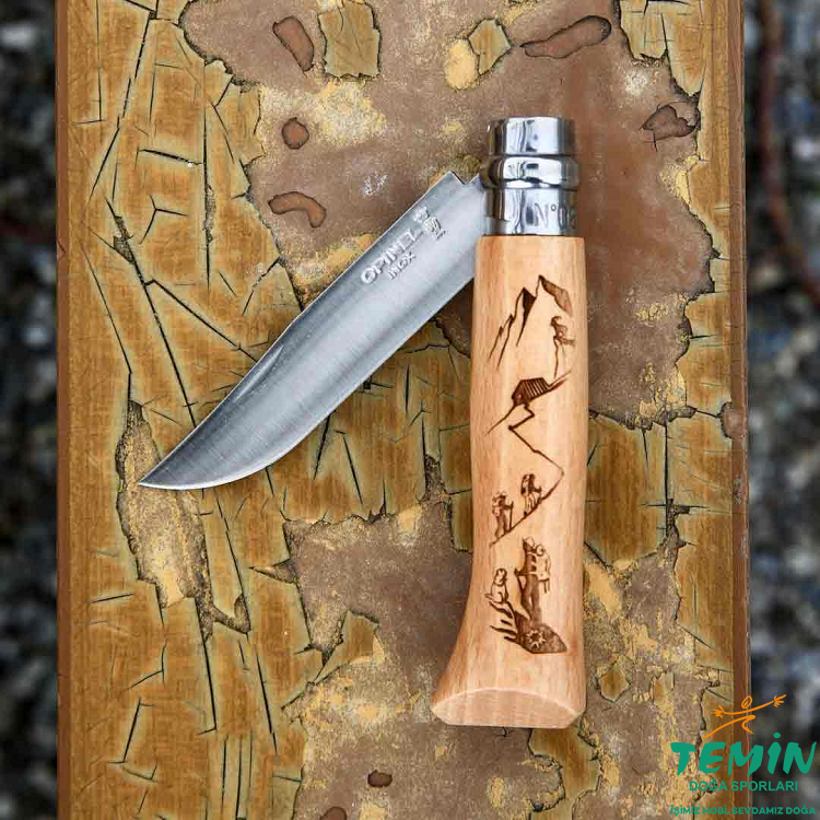Opinel Inox Alpine Macera Yürüyüş Desenli Paslanmaz Çelik 8 No Çakı