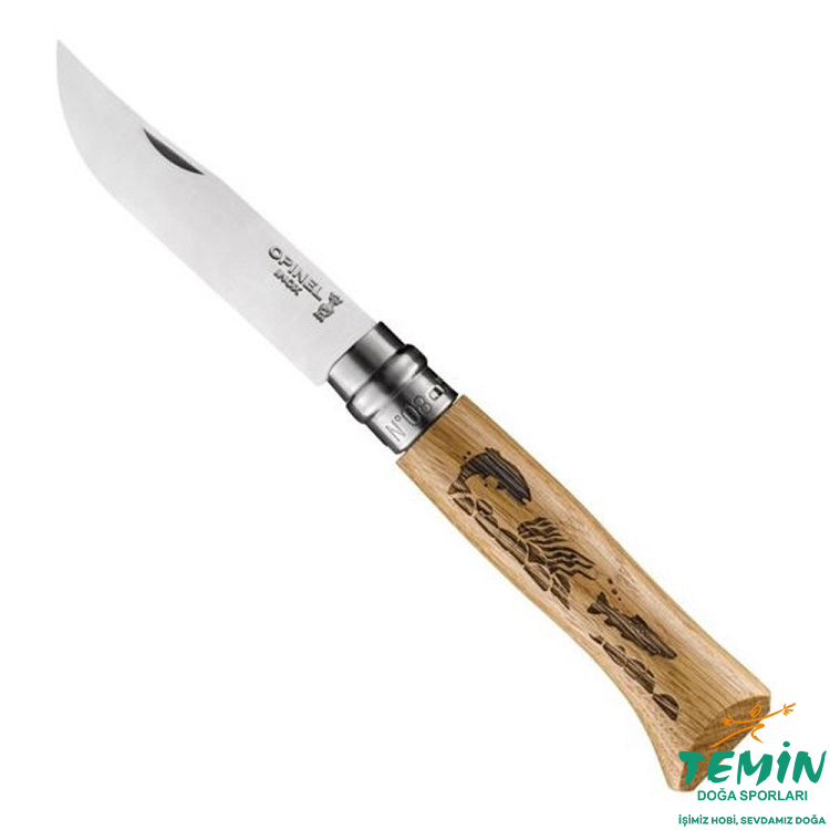 Opinel Inox Meşe Saplı Balık Desenli Paslanmaz Çelik 8 No Çakı
