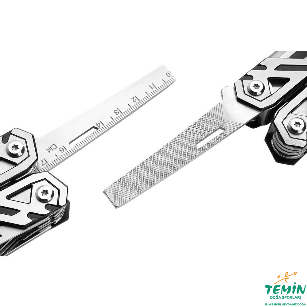 Dayanıklı Yapı ve Naylon Kılıf : 3Cr13 paslanmaz çelikten üretilen multitool, HRC56 sertliğe kadar ısıl işlem görmüştür ve sağlam, uzun ömürlüdür. Sapı, siyah oksit kaplama ve parlak yüzeyli 3D işleme ile korozyona karşı dayanıklıdır. Taşıma kolaylığı için 2.2 inç kemer halkasına sahip premium naylon kılıf kutu içeriğine dahildir.