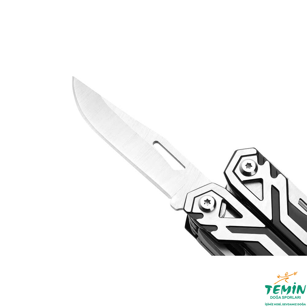 Yaylı Penseli Multitool : Pense yaylı mekanizma ile donatılmıştır ve otomatik olarak açılır. 2.75 inç (7 cm) uzunluğunda düz kenarlı bıçak ve tırtıklı bıçak içerir.