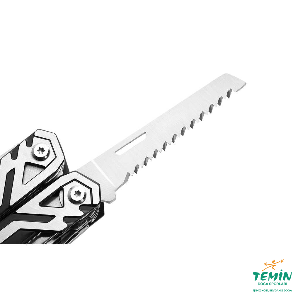 21 Fonksiyon ve Güvenlik Kilidi : Bu çok yönlü multitool; iğne burun pense, standart pense, tel kesici, düz kenarlı bıçak, 8 fonksiyonlu bitlerle manyetik tornavida, cetvel/eğe, tırtıklı bıçak, şişe açacağı, konserve açacağı, biz (delici uç), mini düz tornavida gibi 21 farklı fonksiyon sunar. Tüm fonksiyonlar güvenlik kilidi ile donatılmıştır.