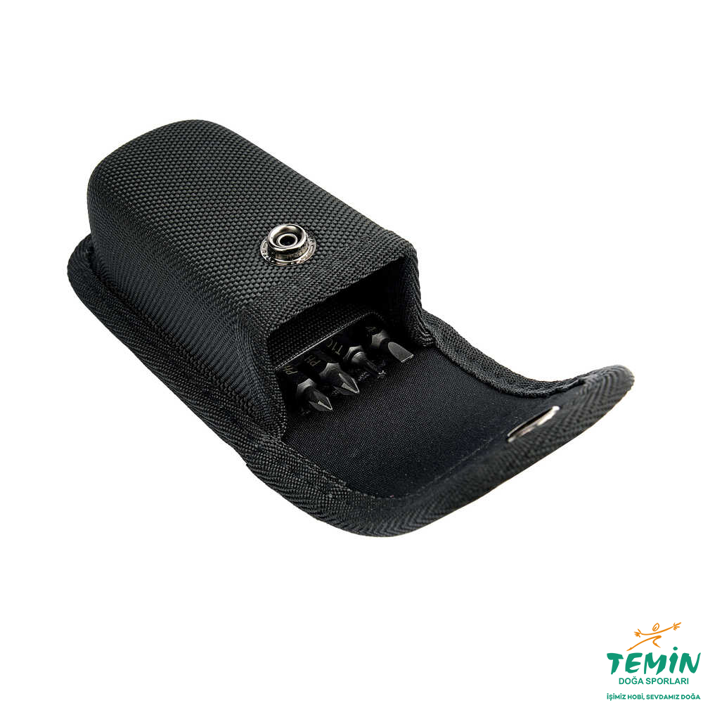 Manyetik Bit Tutucu : Güçlü manyetik mekanizmalı değiştirilebilir bit tutucu, 4 adet çift uçlu bit ile birlikte gelir. Bit tutucu, farklı çalışma koşullarına uyum sağlayabilen dik açı ve düz olmak üzere 2 kilitli pozisyona sahiptir.