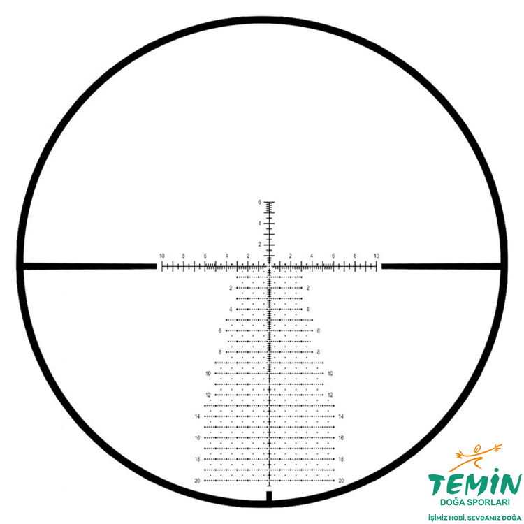 Birinci Odak Düzlemi (FFP) tasarımını benimseyen retikül, büyütmeyle senkronize olarak ölçeklenir.