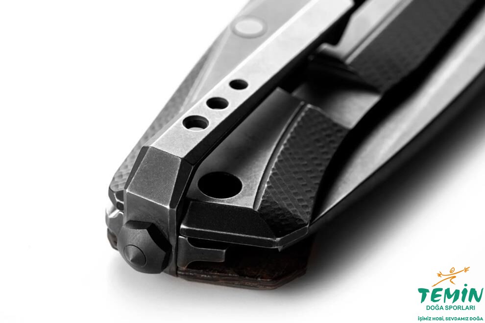 Bıçak daha dengelidir ve daha yumuşak bir hareketi kolaylaştırır. Titanyum SOLID® klips, titanyum çerçeveye bir tungsten karbür cam kırıcı ile tutturulmuştur. Kilitleme çubuğu, bıçağın dönmesi nedeniyle titanyum çubuğun aşınmasını önlemek için sertleştirilmiş çelik bir parça ile güçlendirilmiştir.