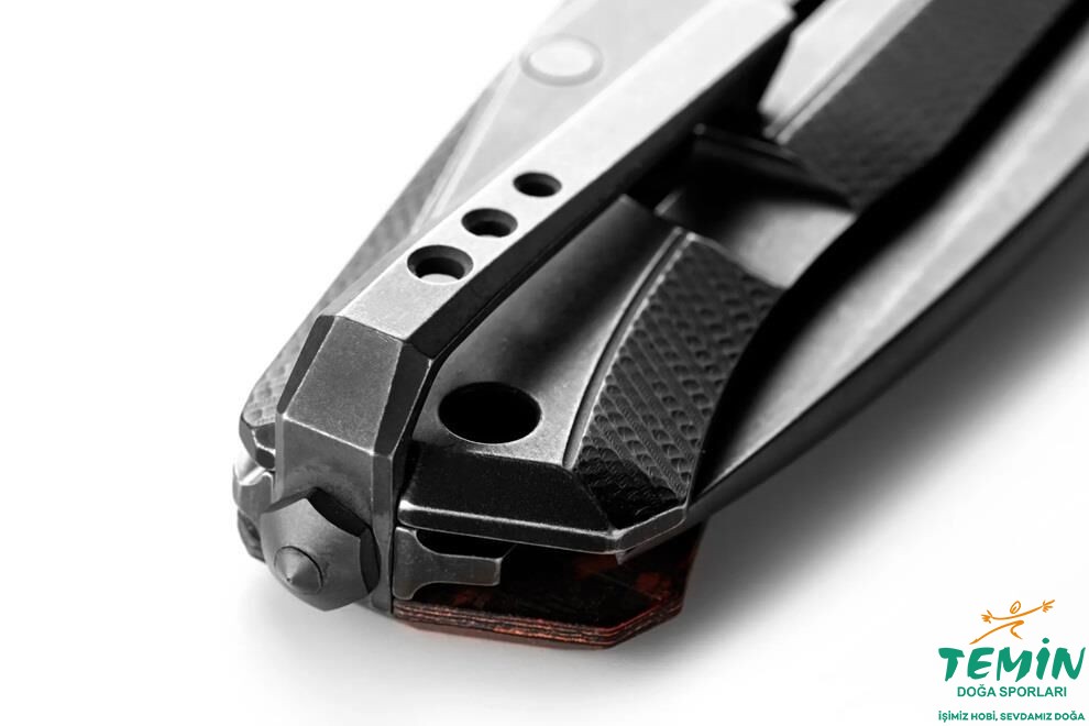 Bıçak daha dengelidir ve daha yumuşak bir hareketi kolaylaştırır. Titanyum SOLID® klips, titanyum çerçeveye bir tungsten karbür cam kırıcı ile tutturulmuştur. Kilitleme çubuğu, bıçağın dönmesi nedeniyle titanyum çubuğun aşınmasını önlemek için sertleştirilmiş çelik bir parça ile güçlendirilmiştir.