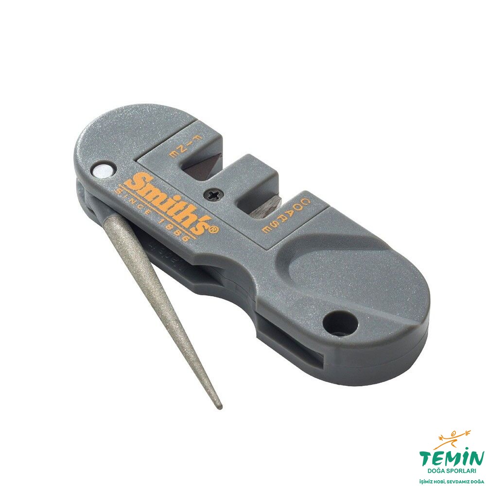 Smith'in “Pocket Pal” Çok Fonksiyonlu Bıçak Bileyici, her seferinde “Mükemmel Kenar” sağlayan önceden ayarlanmış çapraz karbürler ve seramik taşlara sahiptir.