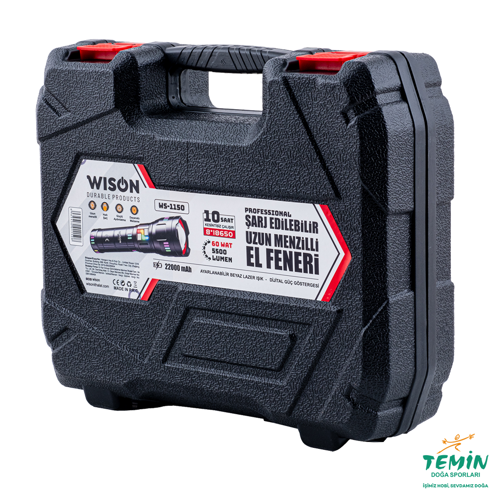 Wison WS-1150 uzun menzilli el feneri, kamp, avcılık, güvenlik, arama-kurtarma gibi zorlu dış mekan görevlerinde yüksek performans arayan kullanıcılar için mükemmel bir tercihtir.