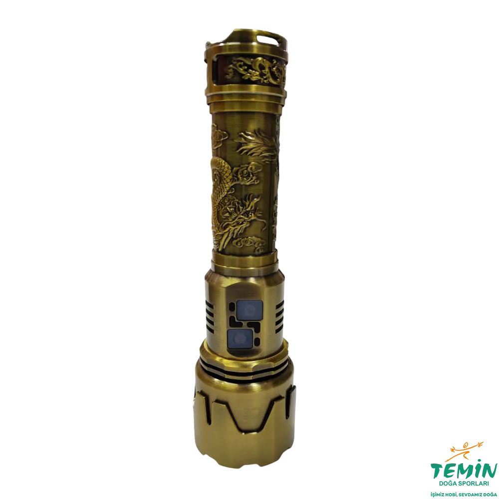 Hem estetik hem de yüksek performans arayan kullanıcılar için özel tasarlanmış, şarj edilebilir, zoom özellikli bir el feneridir. Özellikle ejderha desenli altın renkli gövdesiyle performans ve sanatın birleşmiş halidir.