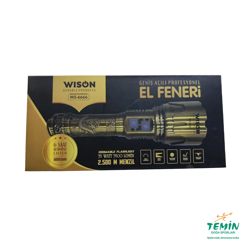 Wison WS-6666, tam da bu noktada devreye giren; yüksek lümen gücü, geniş açılı aydınlatması ve profesyonel kullanım yapısıyla öne çıkan bir el feneridir.